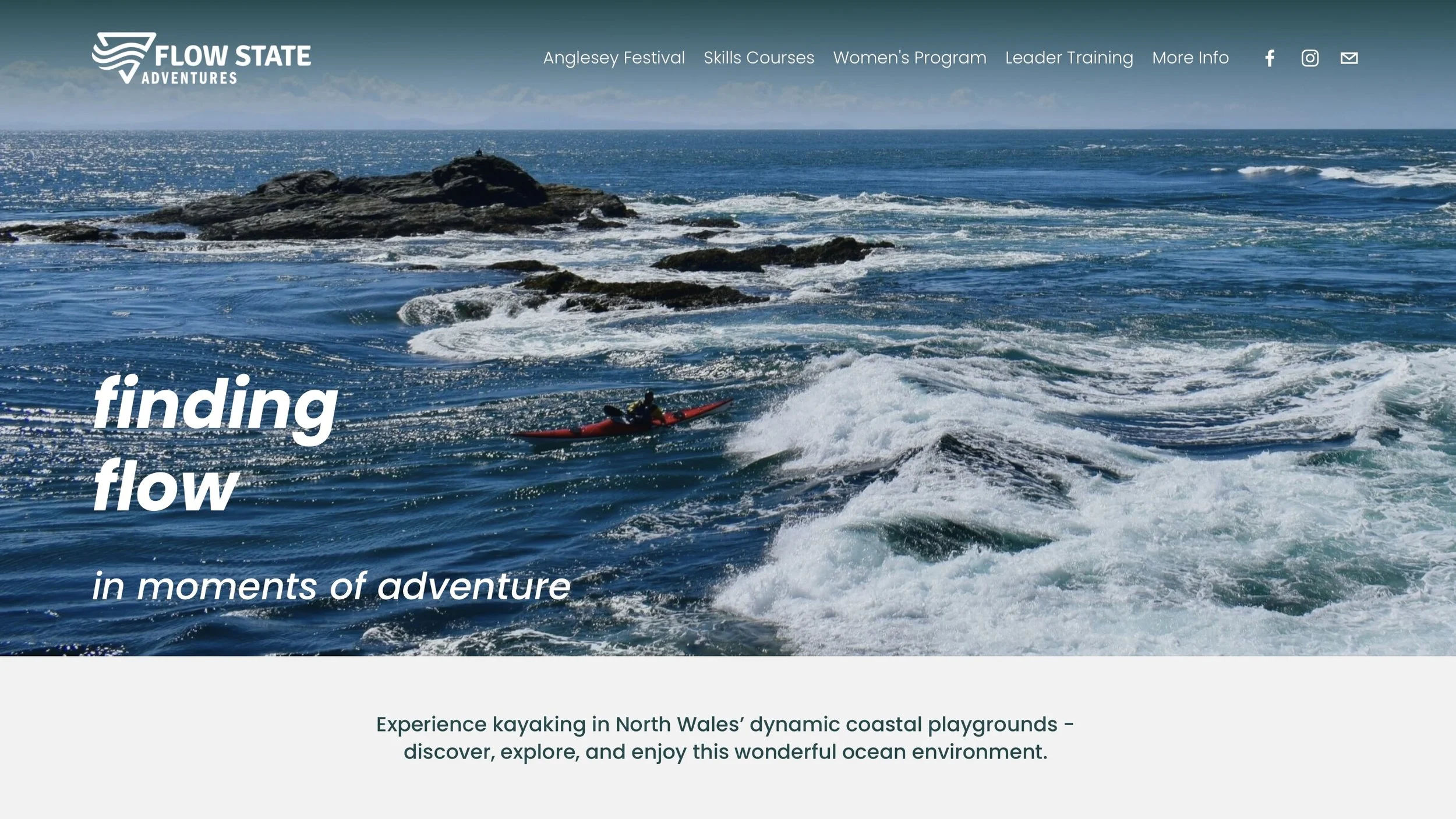 We provide quality coaching in fantastic kayaking venues. Our program is based on Anglesey in North Wales - with its wonderful range of rock gardens, tide races and surf beaches, this coastline is ideally suited to the high-energy, progressive approach of our program.