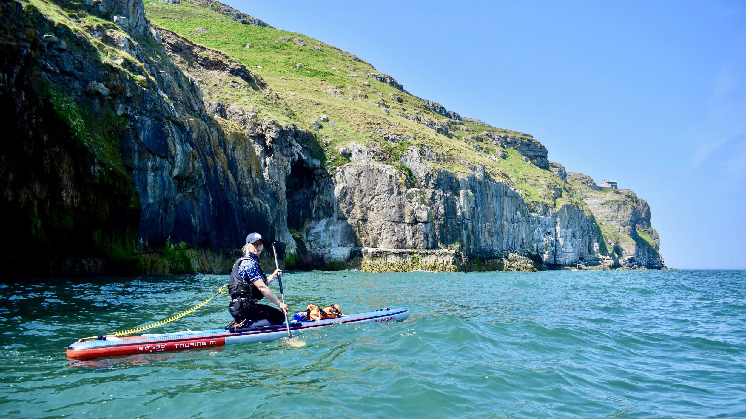 The Great Orme is a classic paddling adventure - a huge limestone headland projecting boldly into the Irish Sea from the north Wales mainland coast, focusing wind and waves in a committing location. Its soaring sea cliffs and wild atmosphere guarantee a memorable experience, and had been on our coastal SUP hit list for some time. A weather window opened up - we seized the day!