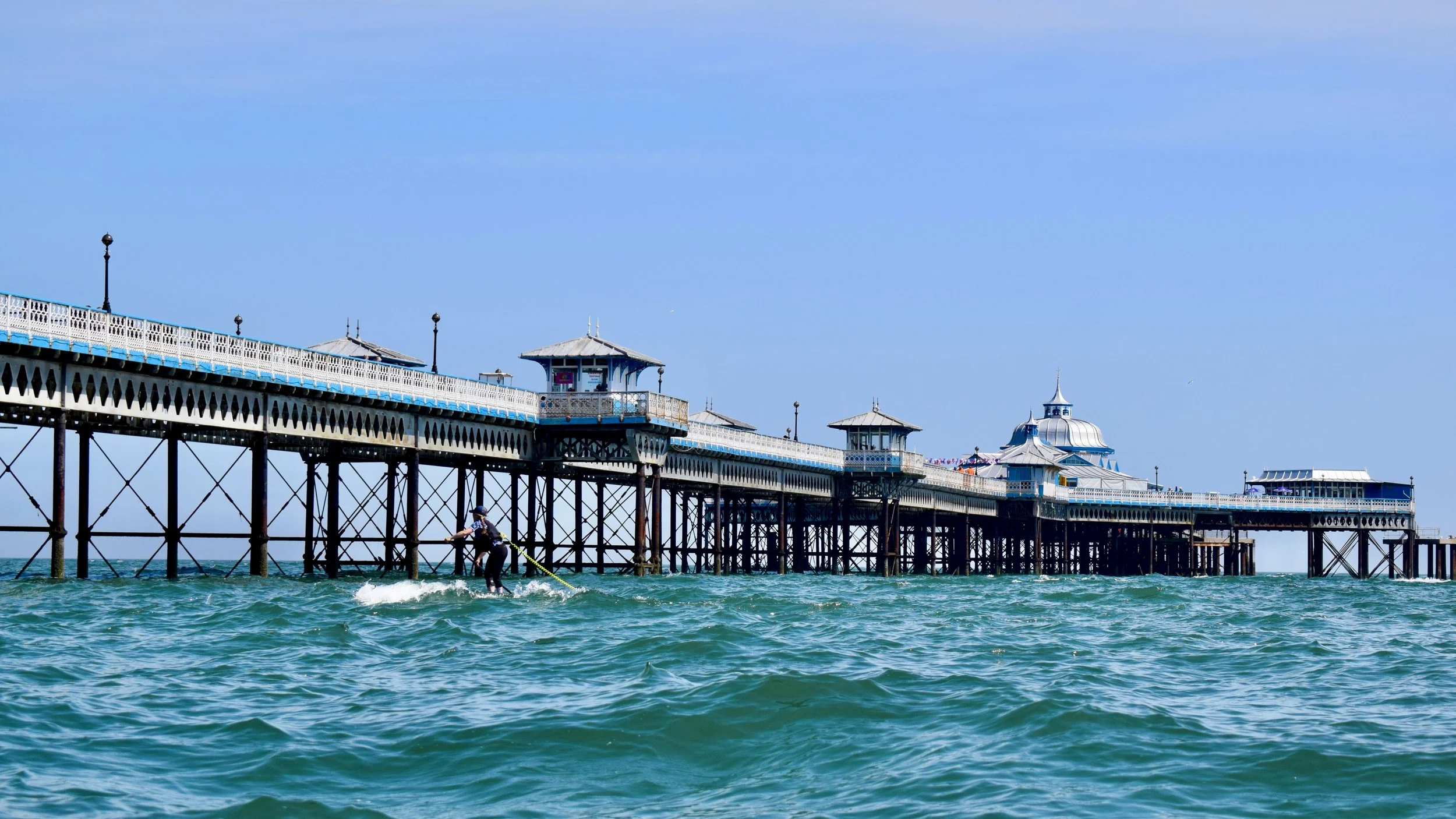 Ahead lay 10km of exposed coastal adventure.. We confirmed our plan, agreeing to keep it simple - no need to ‘go around the Orme’ in our discussions! An anti-clockwise journey beckoned, carefully timed to manage the significant tidal issues that are an important feature of this complex environment. We paddled across the bay past the Grand Hotel’s faded elegance, towards more challenging waters. Winds remained light with calm seas - ideal conditions for our intended route. We paddled between the pilings of Llandudno Pier, its impressive structure extending well offshore. This Victorian design is the longest in Wales, and was the worthy winner of the 2025 ‘Pier of the Year’ award from the aptly named ‘National Piers Society’. There was no time to linger, however - close to local HW, we needed to arrive at west shore before the falling tide left us stranded on Conwy’s offshore sandbanks.